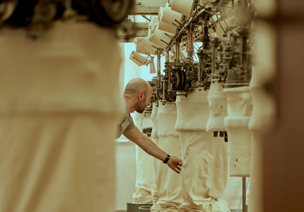 A century later, a 90-year-old Henley was unearthed by Gitta and Peter Plotnicki at a Berlin flea market. An echo of Balthasar Merz’s bygone brand—and its meticulous manufacturing techniques—the rare Henley piqued the pair’s curiosity, leading them to the Swabian Alps and a long-retired factory floor of century-old loopwheelers. The idea to revive both the machines and the brand was born.
