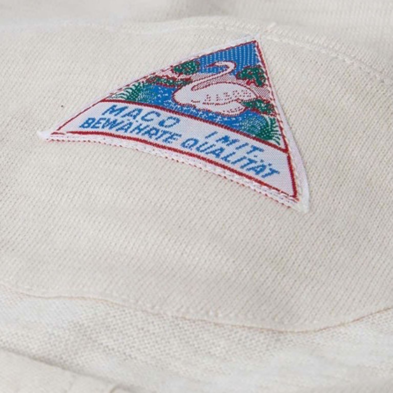 The Maco-Imit label, a hallmark of superior fabric, speaks to the inherent quality and luxurious handfeel of its specialized blend. Maco alludes to the high-grade, soft Egyptian cotton it signifies, with a subtle triangular motif hinting at its ancient origins. Imit—dating back to 1911—acknowledges the original blend of cotton and viscose, expertly crafted to mimic the exquisite softness of true Egyptian cotton.