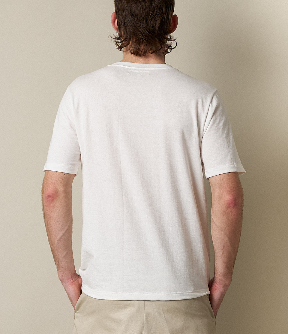 Mit seiner ikonischen Silhouette der 1940er Jahre, seiner ultrasanften Textur und seiner entspannten Passform ist dieses T-Shirt mit Rundhalsausschnitt zuverlässig, bequem und zeitlos – ein schlichtes Teil für den Alltag, von Hand mit viel Expertise gefertigt, um für viele Jahre gut auszusehen und sich gut anzufühlen.