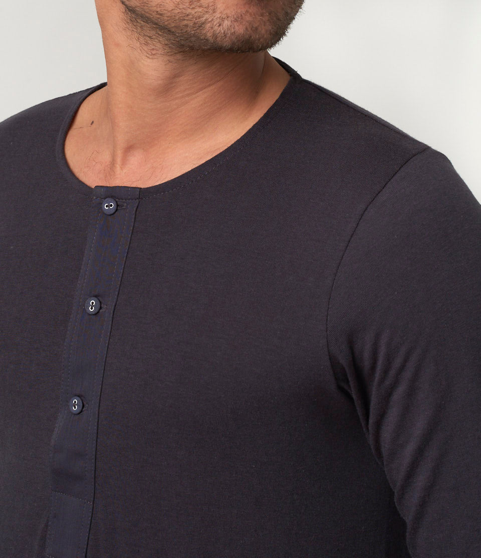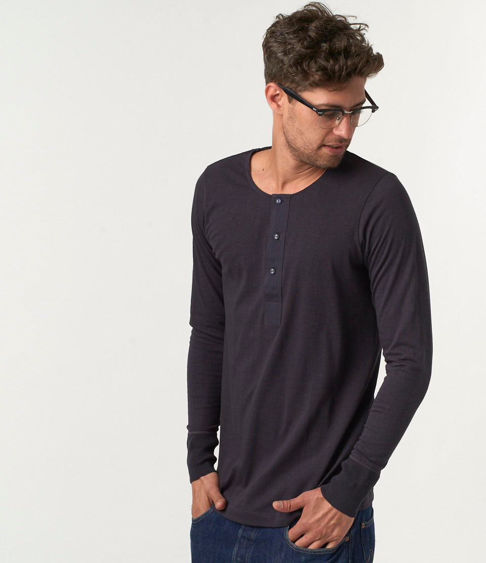 Ein Original-Flohmarktfund von 1911 ist die Vorlage für dieses ,,Arbeiter-Knopfleistenhemd”. Besonderes Augenmerk: Die authentische Verarbeitung des Halsausschnitts! Der Kragen wird von Hand ganz fein 2-fach umgeschlagen - da ist echtes Können gefragt. Genau so wurde auch vor 100 Jahren der Halsausschnitt dieses Hemdes original verarbeitet, da es die komfortablen modernen Einfassmaschinen noch nicht gab. Zudem machen die aufgesetzte Knopfleiste aus Baumwollstoff und die originalen Wäscheknöpfe dieses Shirt zu einem besonderen Hingucker. Und auch der aufgesetzte Nackenspiegel darf natürlich heute wie damals für hart arbeitende Männer nicht fehlen.