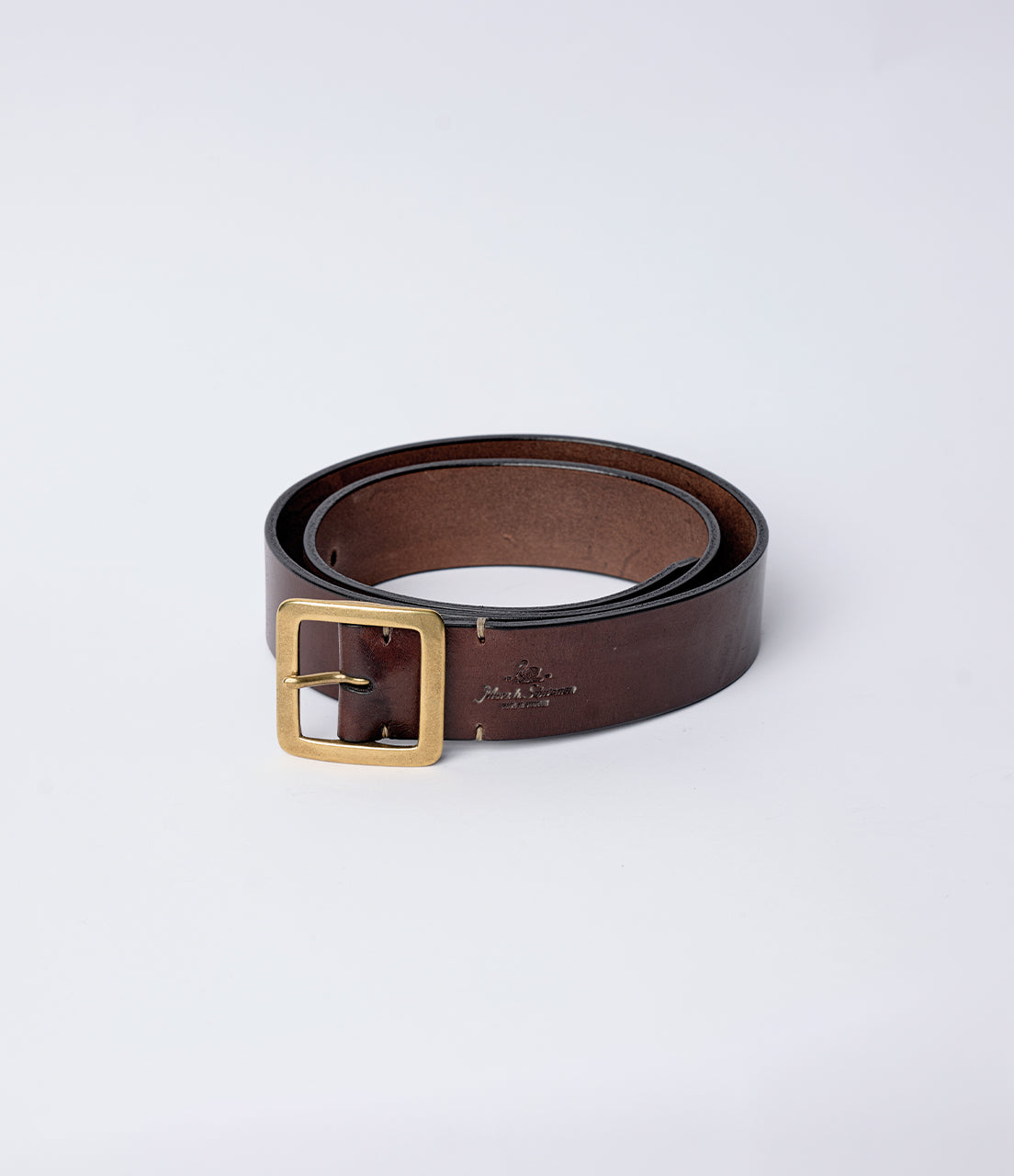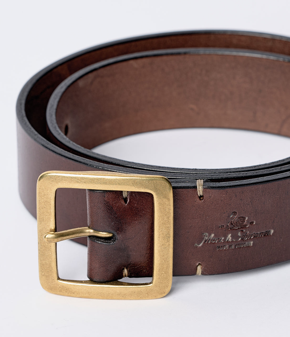 Elevate your wardrobe with this classic leather belt, a timeless accessory meticulously handcrafted in Bonn, Germany. Made from the finest saddle leather sourced from Japan, this belt exemplifies exceptional craftsmanship and premium materials. Featuring a bold 4cm width and a durable brass buckle, also sourced from Japan, it is a versatile statement piece perfect for pairing with denim or chinos.
