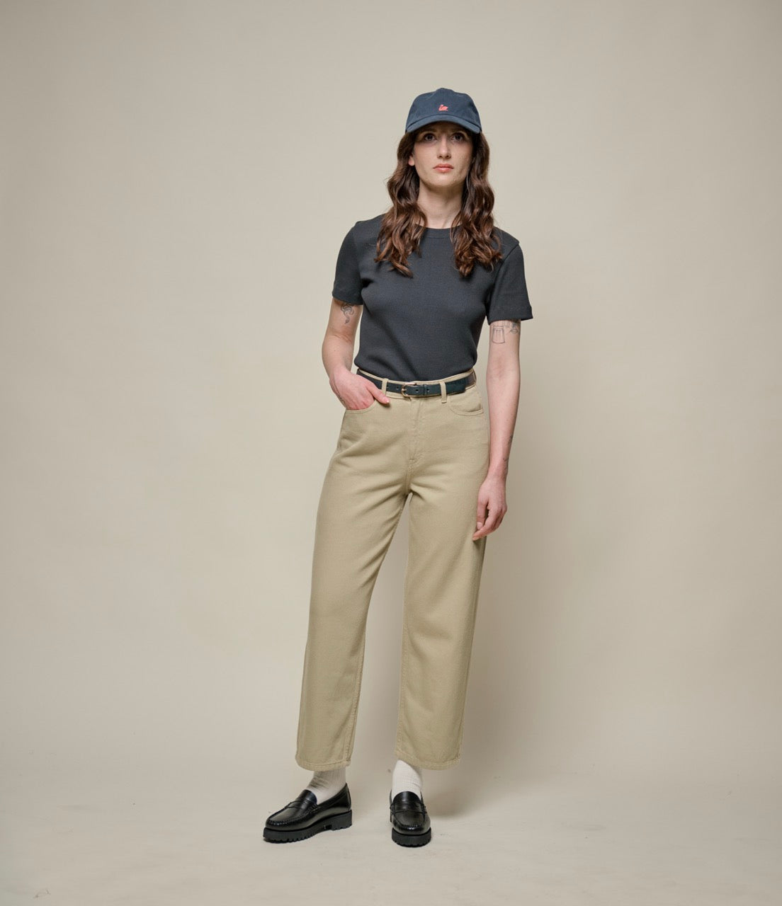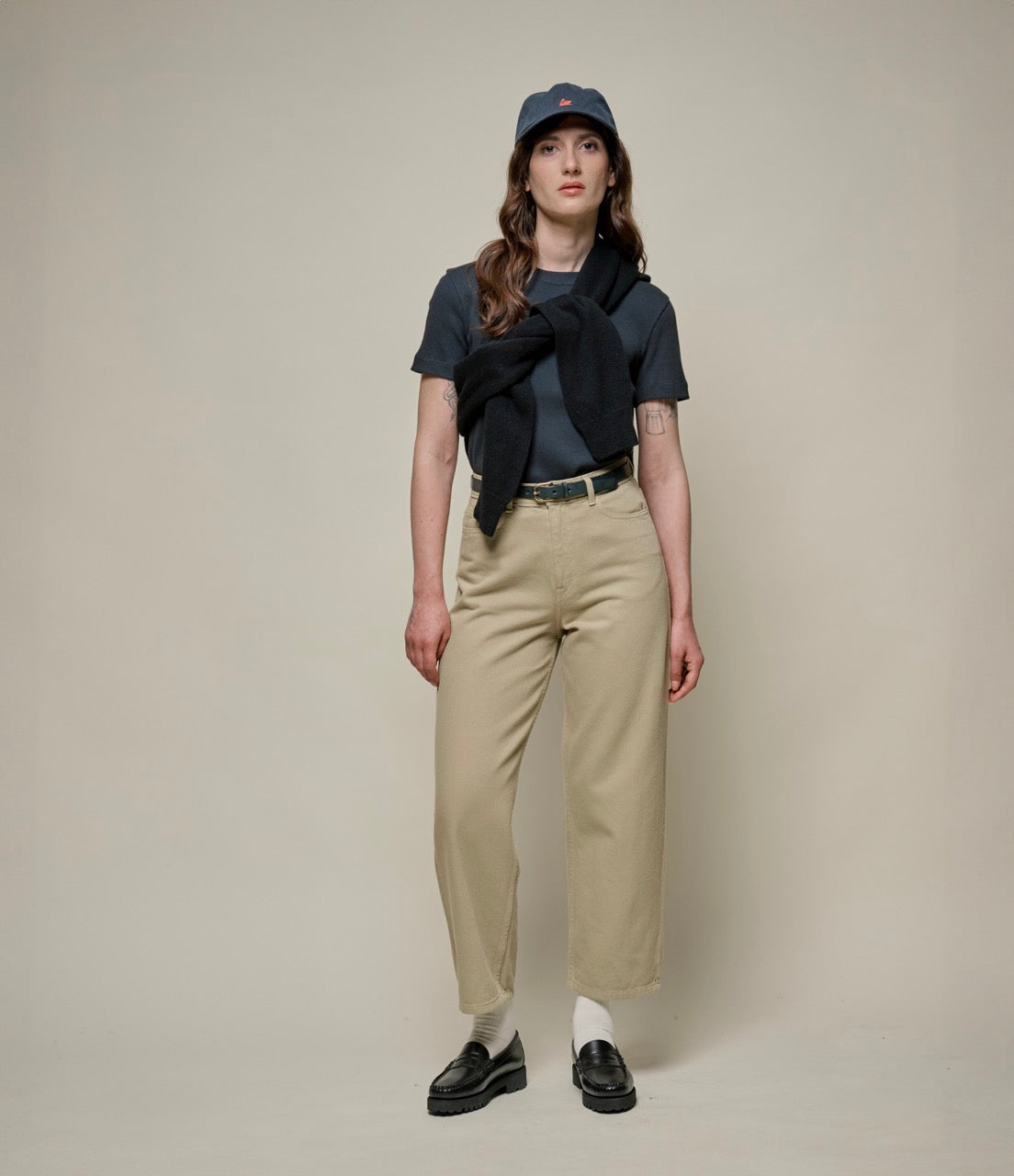 The perfect addition to your wardrobe rotation, these pants offer a distinct look that balances form and function. Distinguished by their barrel fit—which narrows at the waist, loosen across the thighs then tapers down the calf—these pants are made with 100% organic cotton in a broken-twill pattern.
