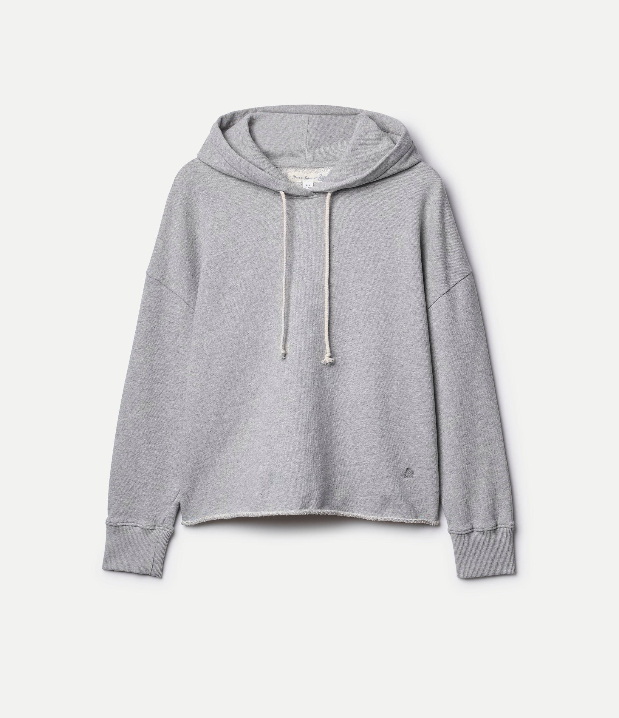 This boxy hoodie with an ultra-comfy boxy fit features an open-edged hem and is made with retro fleece. The relaxed feel of this staple makes it the perfect piece to match with your preferred chino or sweatpants.