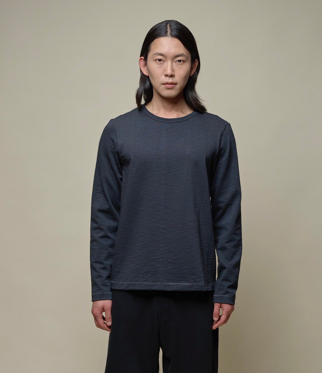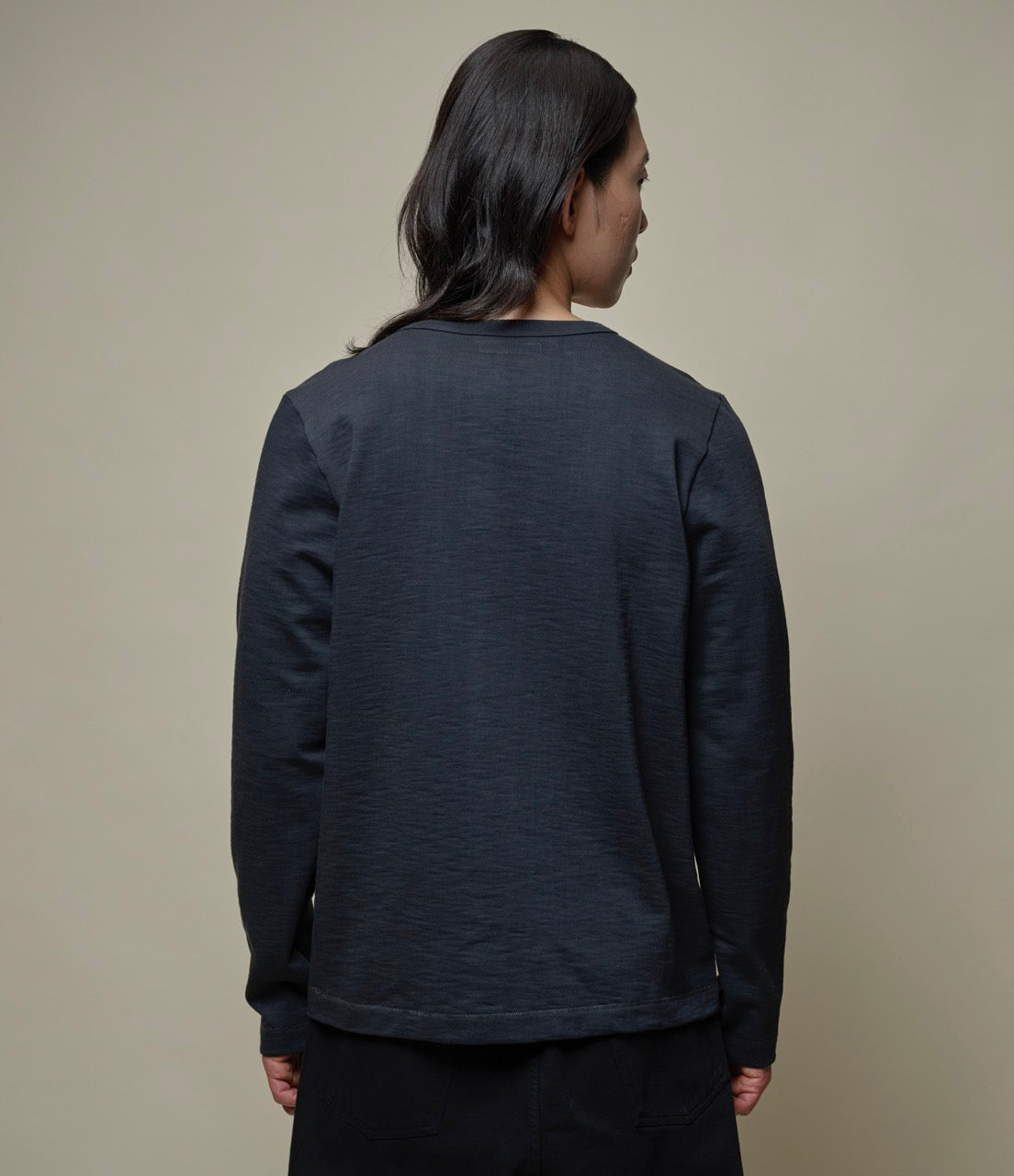 Its solid and slightly slubbed structure is exceptional in every way. This longsleeve is a real breath-taking piece that feels sturdy yet comfortable thanks to its unique structure. Its timeless design and the loopwheeled heavy material made of 100% organic cotton make this garment more than a regular longsleeve – it's probably the world's most sturdy and heaviest jersey material.