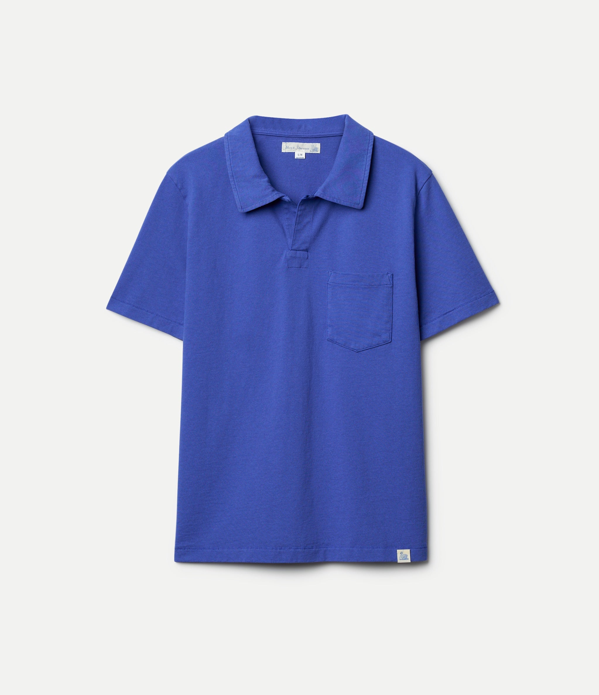 Indispensable at sporting events, the classic polo shirt rose to fame quickly during the 60s. This era's coolest and most influential men underscored their relaxed attitude even more by wearing the collared shirt. However, the polo shirt left a mark well beyond sports. We rewrite history by reviving this iconic piece in our way, maintaining common elements of the classic polo shirt like the modern buttoned collar and combining them with characteristic Merz b. Schwanen features. The easy-going fit adds a modern vibe, while the triangular inserts under the arms assure comfort.