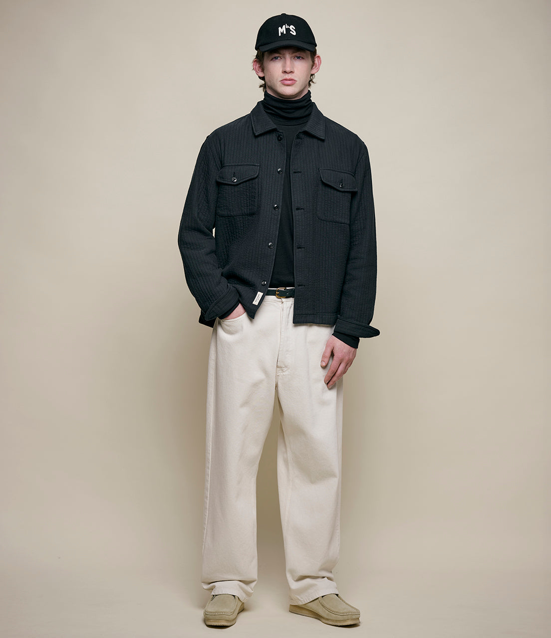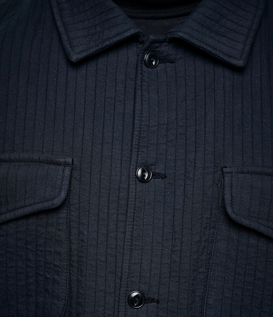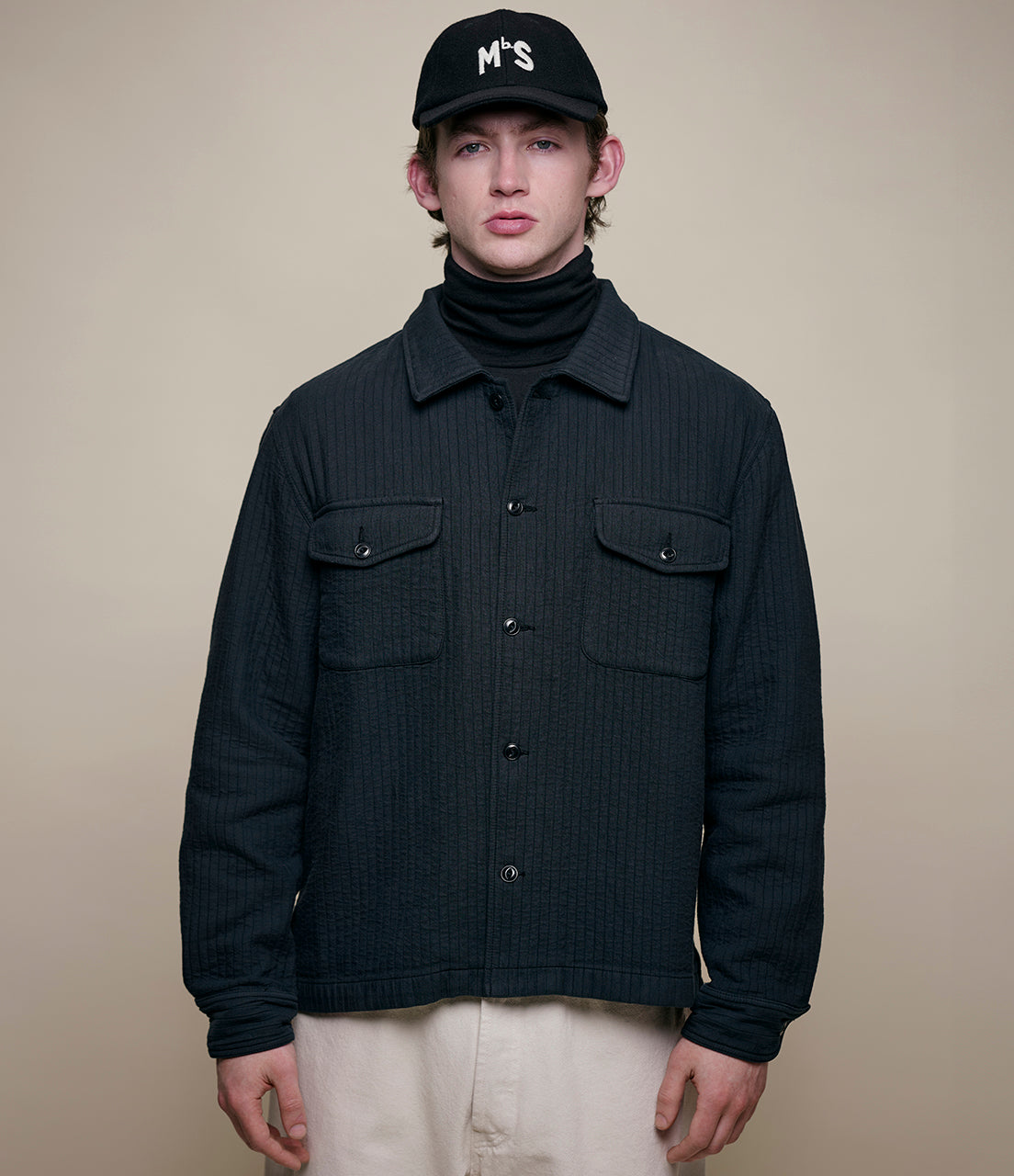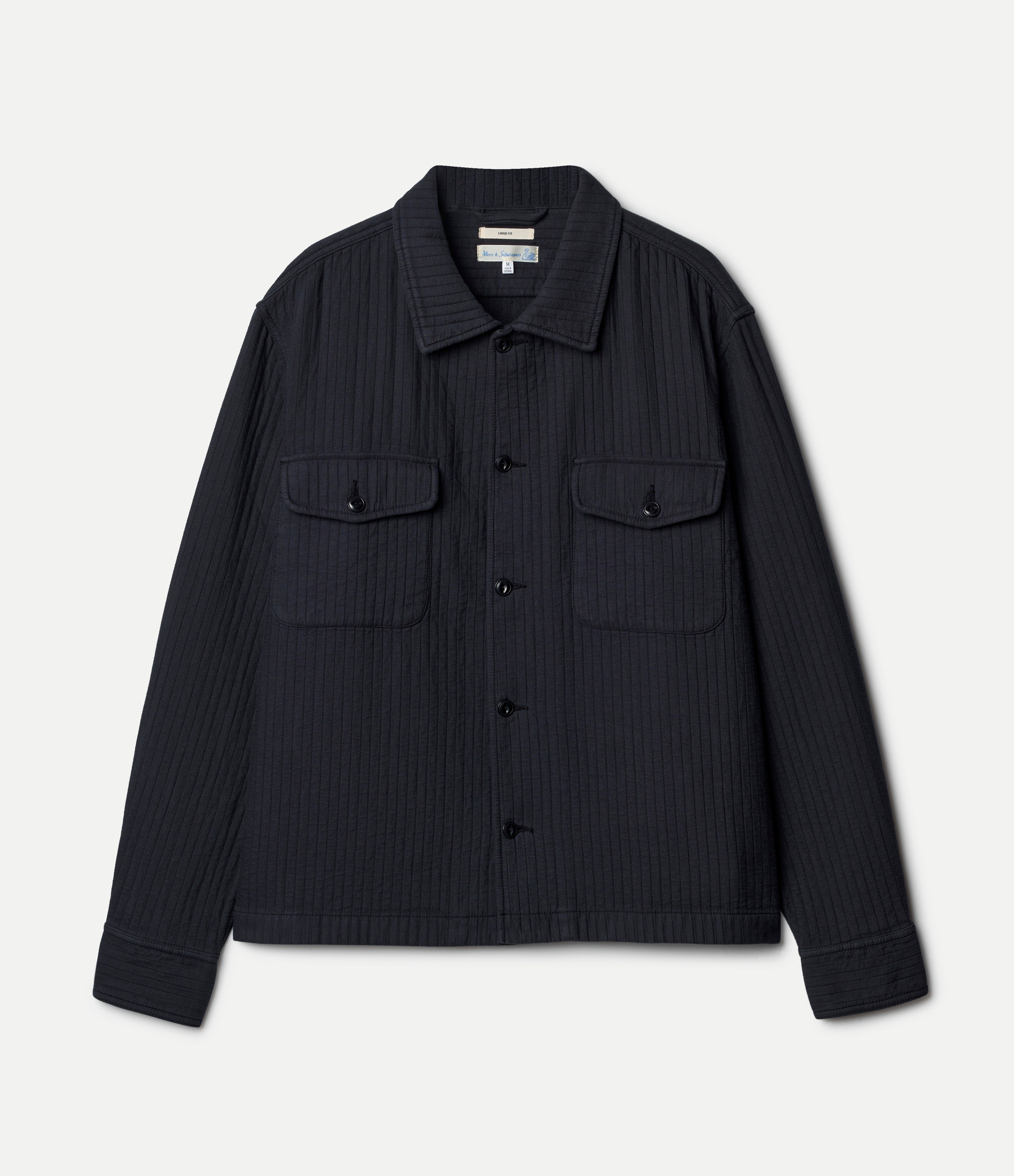 Stay warm in style with our Padded Shirt. Crafted from 100% organic cotton, the padded fabric provides warmth, making it the ideal mid-layer for colder days. The structured surface adds to its appearance. What sets this piece apart is its unique two-layer weave, crafted entirely from cotton—eliminating the need for a polyester filling in the middle. This innovative approach not only enhances comfort but also underscores our commitment to sustainable design.