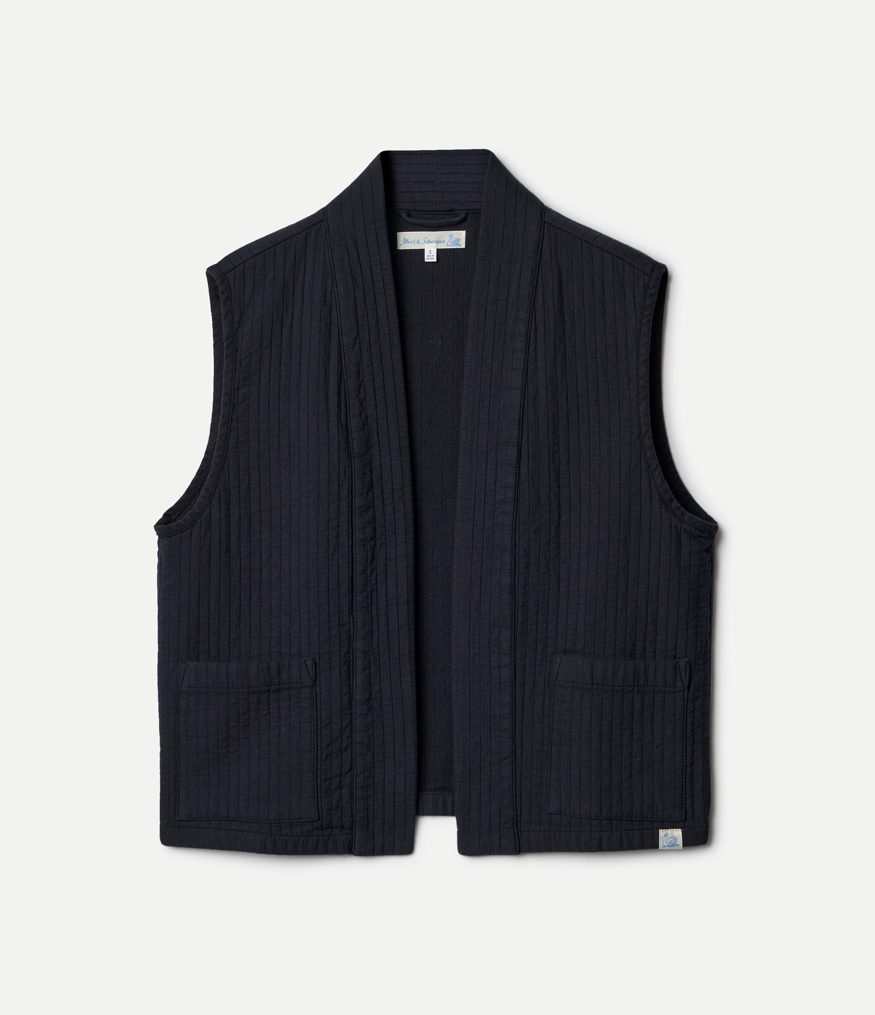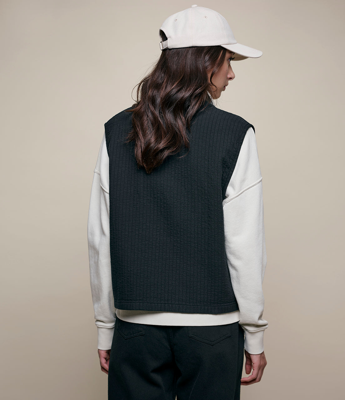 This vest combines functionality with sustainable craftsmanship and is ideal for layering, making it a go-to piece for transitional weather and beyond.