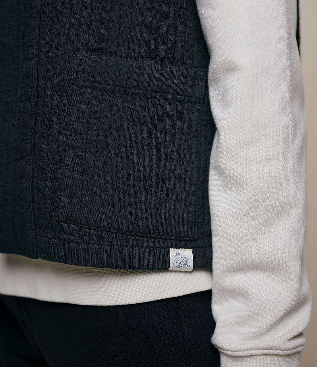 Add an extra layer of warmth with our Padded Vest. Made from 100% organic cotton padded fabric, this vest is perfect as an extra layer that adds structure and versatility to any look. What sets this fabric apart is its unique two-layer weave, crafted entirely from cotton—eliminating the need for a polyester filling in the middle. This innovative approach enhances comfort and underscores our commitment to sustainable design.