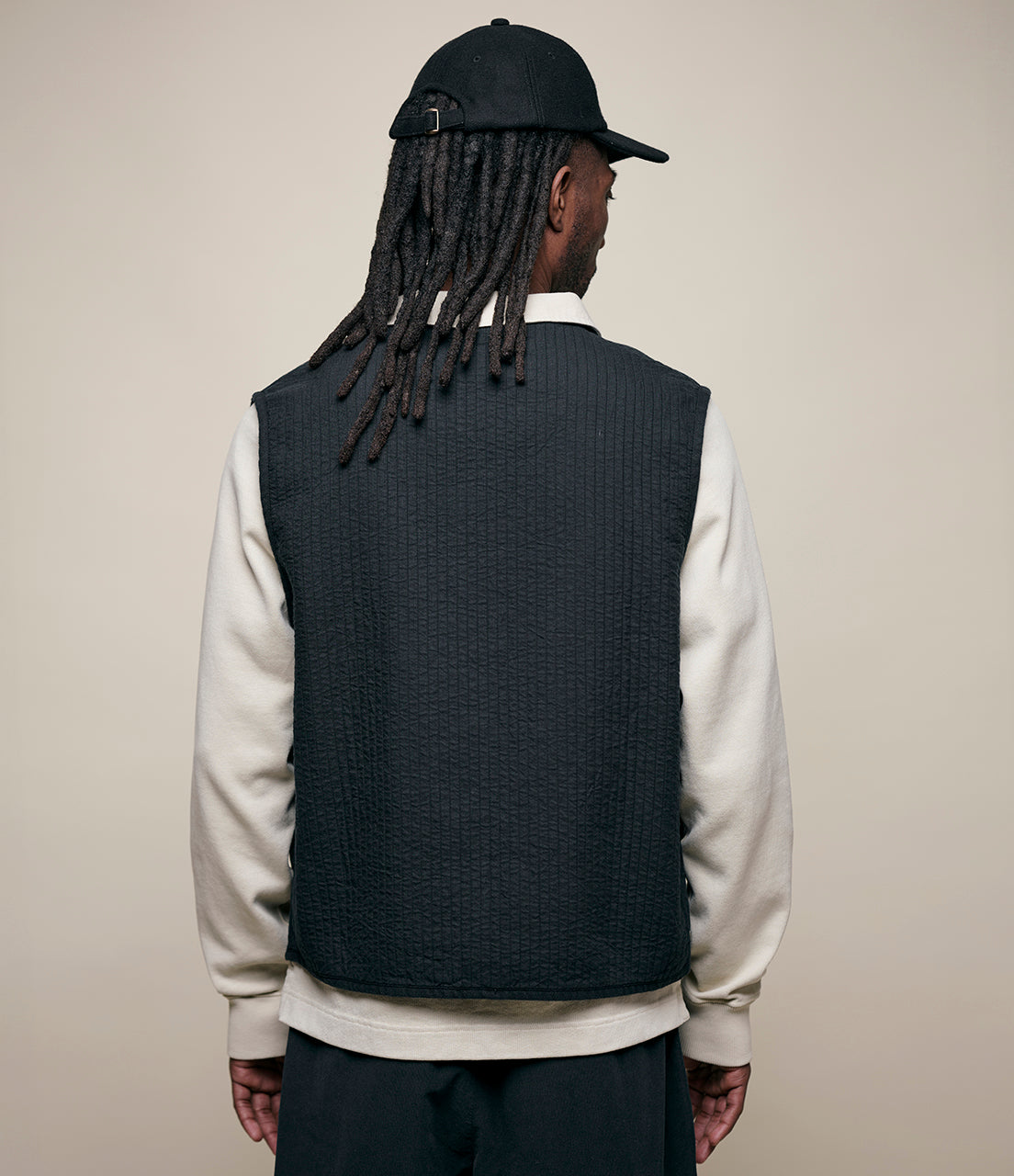 This vest combines functionality with sustainable craftsmanship and is ideal for layering, making it a go-to piece for transitional weather and beyond.