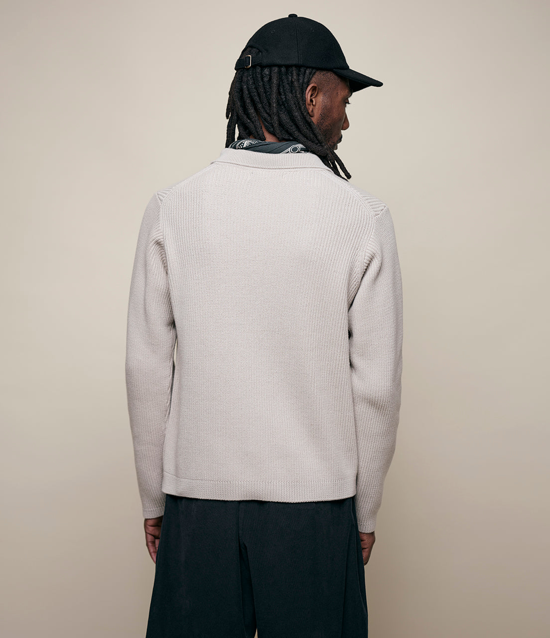 Designed with a knitted collar, corozo nut buttons, and a relaxed fit, it channels subtle retro influence with modern ease. Finished with a swan loop label at the hem, it’s a soft yet structured piece for refined everyday wear.