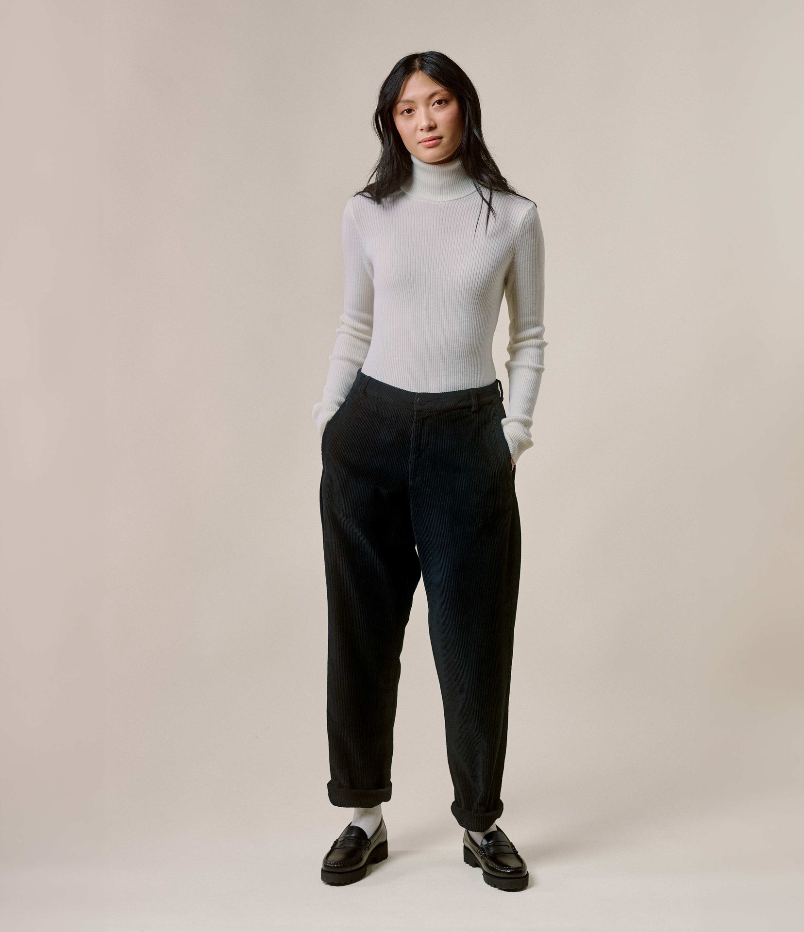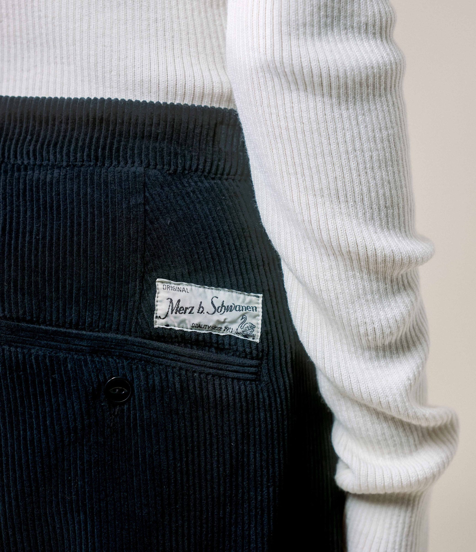 An autumnal variation of a Merz b. Schwanen staple, these high-waisted pants join our newly launched corduroy range. With a relaxed fit that’s perfect for the coming seasons, the pants feature a pattern of wide stripes, side and back pockets, and a zip fly.