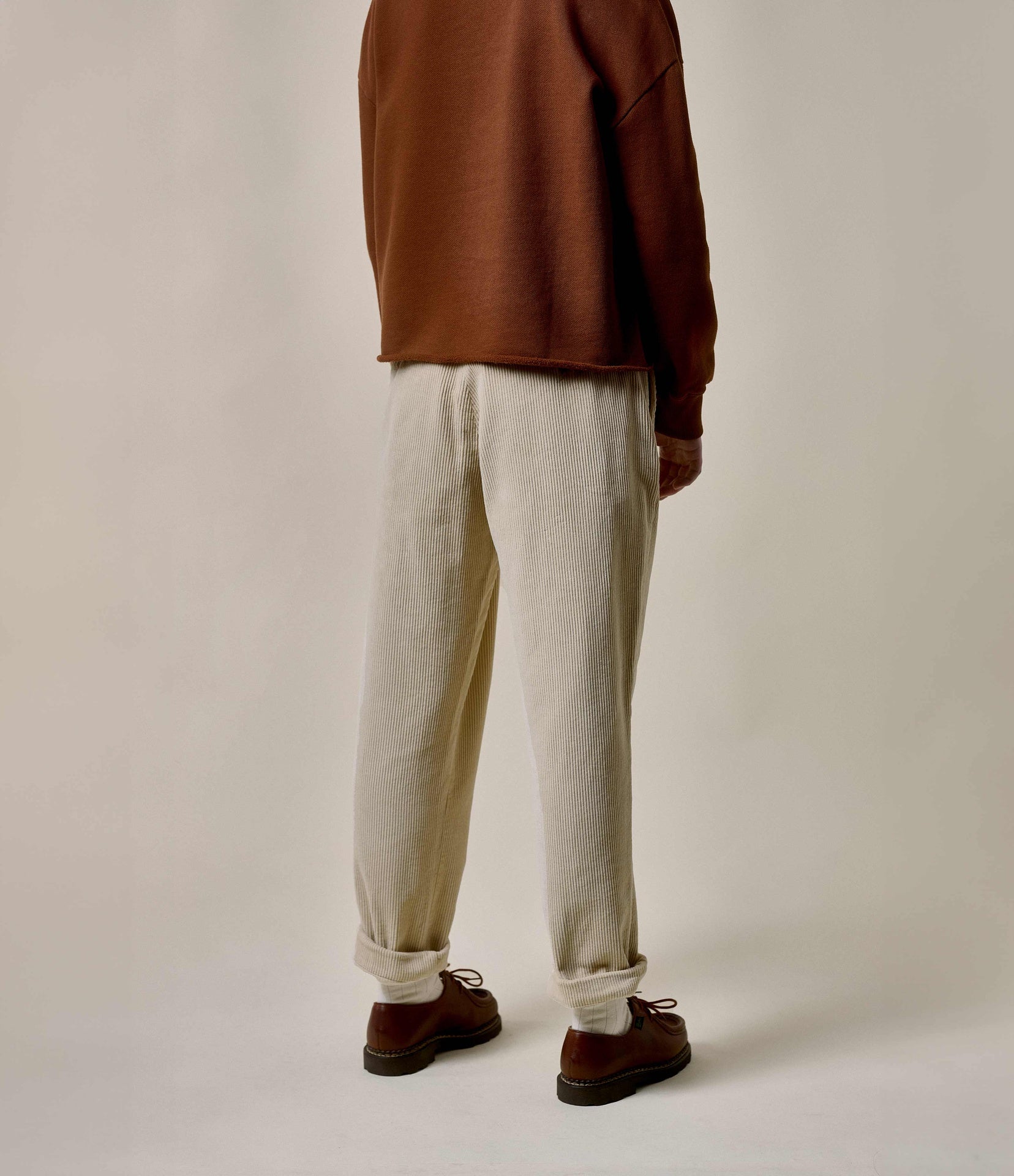 An autumnal variation of a Merz b. Schwanen staple, these high-waisted pants join our newly launched corduroy range. With a relaxed fit that’s perfect for the coming seasons, the pants feature a pattern of wide stripes, side and back pockets, and a zip fly.