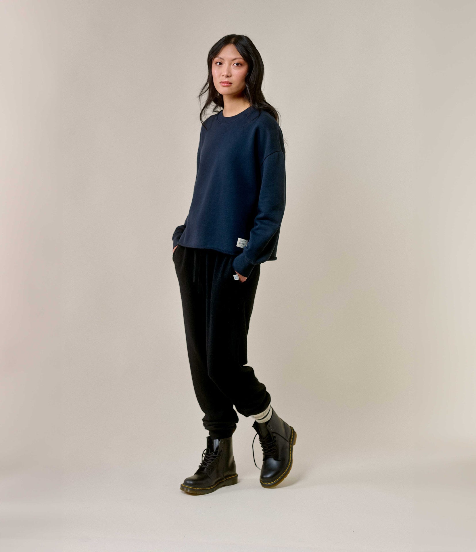 This boxy sweatshirt with an ultra-comfy oversized fit features an open-edged hem and is made with vintage fleece that’s been brushed inside for a very soft feel. The relaxed feel of this autumn staple makes it the perfect piece to match with your preferred chino or sweatpants.